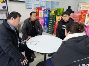图为焦作市邮政分公司党委成员、副总经理纪卫华(左一)日前带领相关负责人在温县邮政分公司杨垒营业所了解业务发展和职工生活情况。 刘 静 王利冬 摄