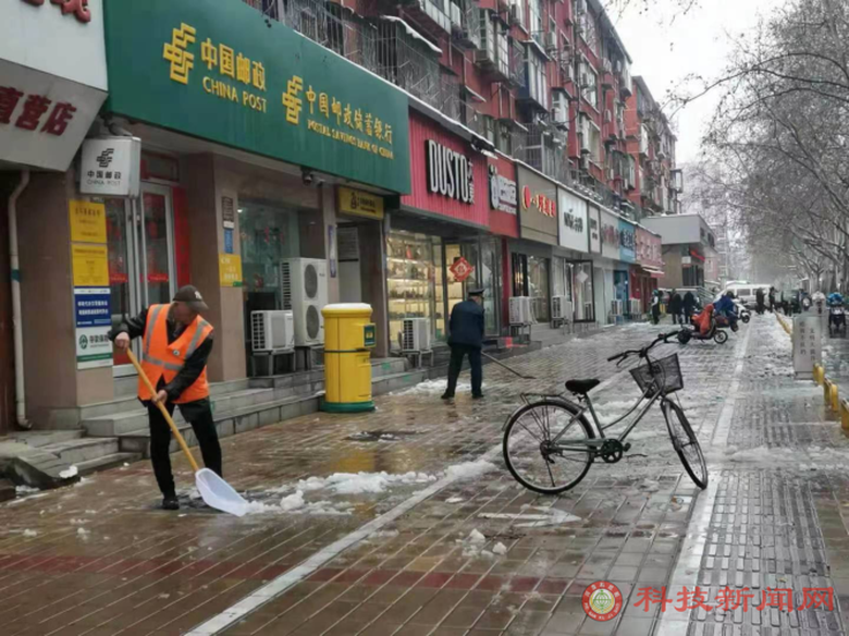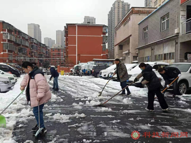 2月25日一大早,郑州市中原区绿东村街道桐柏社区的全体工作人员便带领党员志愿者开展清扫积雪。由于道路上的积雪融化后变成冰面,给清扫工作带来极大不便。大家拿着扫帚、铁锹仔细清扫着社区内的每一条道路,人人干得汗流浃背。