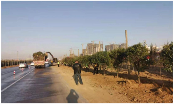 该镇党委书记罗红升、镇长贾少华、党委副书记杨晓飞到一线督导彭花路沿线绿化工作,要求工作专班以高度的责任感和紧迫感快速进入工作状态,持续做好两侧杂物、树枝、树根等清理清运工作的同时,紧跟时间节点、拔高工作标准,有序推进绿化工作。