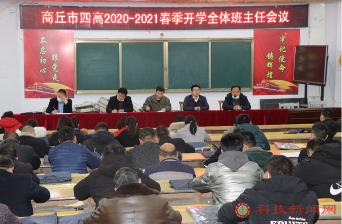 春日迟迟,卉木萋萋。2月27日下午,商丘市四高在道德讲堂召开春季开学前全体班主任会议。校党委书记李晨、校长苗军出席会议。会议由副校长邵红卫主持。