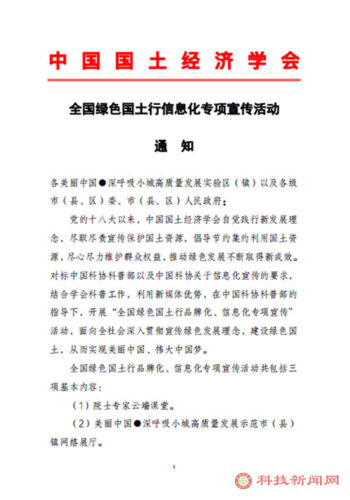 河南科技报全媒体(记者逯豪 张东来)近日,从中国国土经济学会获悉,由中国科协科普部批准该学会开展的《全国绿色国土行信息化专项宣传活动》全面开展。