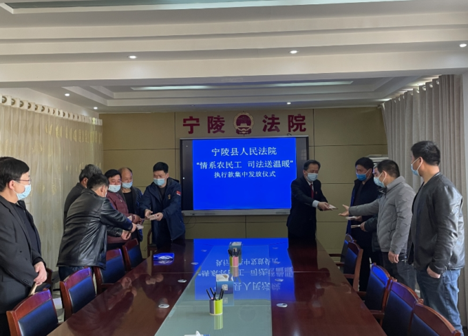 3月3日下午,宁陵县人民法院举行“情系农民工 司法送温暖”执行款集中发放仪式。县法院党组书记、院长王宏伟,和受邀省人大代表王朝印,共向尹某、杨某等申请人发放执行款30余万元。