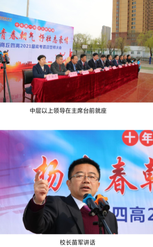 青青园中葵,朝露待日晞。阳春布德泽,万物生光辉。3月5日上午,商丘市四高在南操场举行2021届高考百日誓师大会。校党委书记李晨、校长苗军出席大会并作讲话。大会由副校长邵红卫主持。