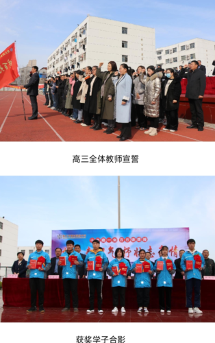 大会对高三69名优秀学子进行了表彰。全体同学和教师分别进行了宣誓。(田保庆 张保国 李建业 文/图)