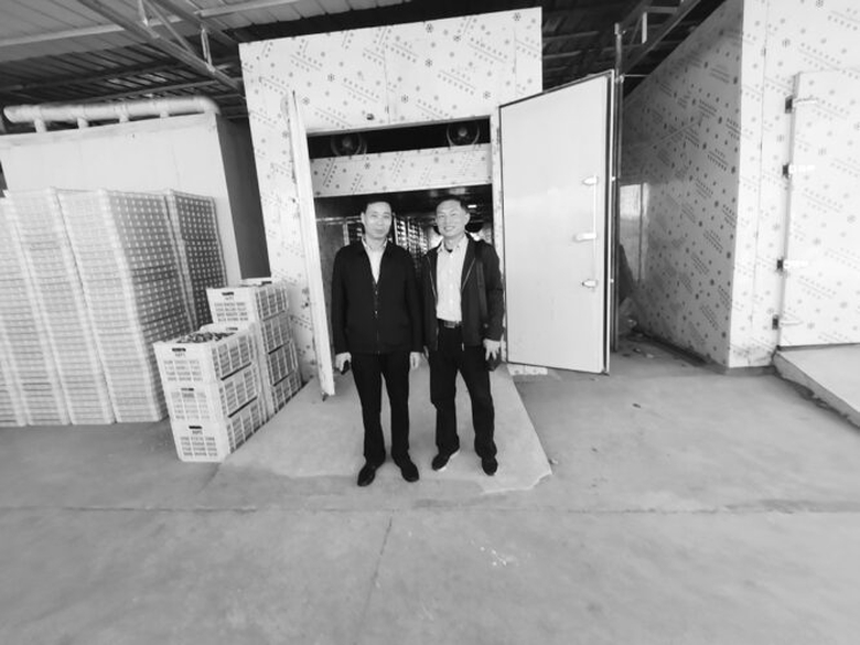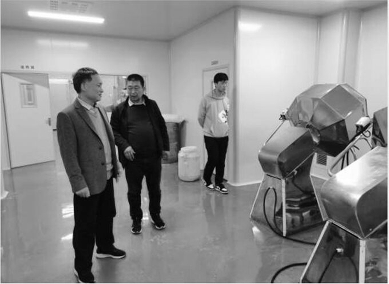 王安建研究员(左)在河南展宏菌业有限公司进行香菇干制储藏技术指导。