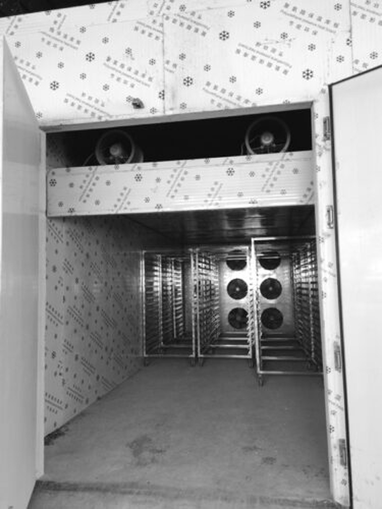 一是初步干燥期。在温度为35℃的热风中烘1~4小时,温度升至40℃,使其含水量降在75%~80%。