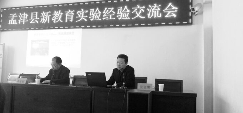 孟高峰(右)在孟津县新教育实验经验交流会上作报告。