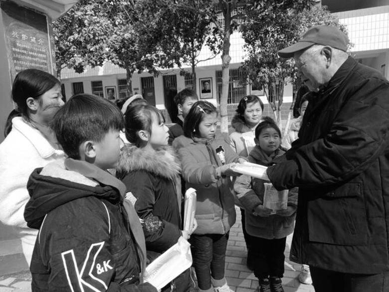 近日,邓州市穰东镇葛营村伤残退伍军人,81岁高龄的邓州市“学雷锋标兵”“关心下一代先进个人”王恒彦,积极配合学校新学期疫情防控工作,慷慨拿出自己的伤残补助金购买防护口罩,并向自己所担任校外辅导员的穰东镇草庄小学免费发放。 图为3月3日上午,王恒彦在该镇草庄小学向少先队员们发放口罩的感人场景。 高 峰 席清铎 摄