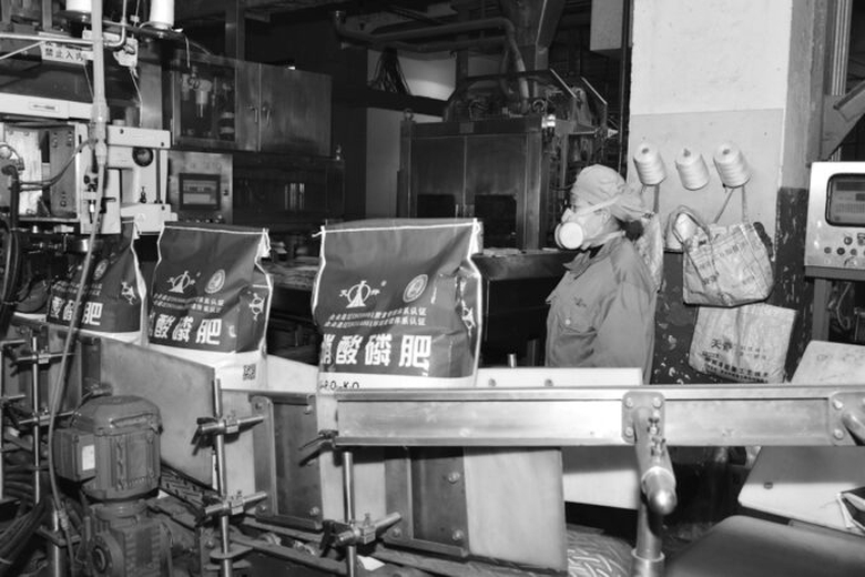 天脊集团开足马力生产化肥,全力支援农业生产。图为化肥包装线作业现场。