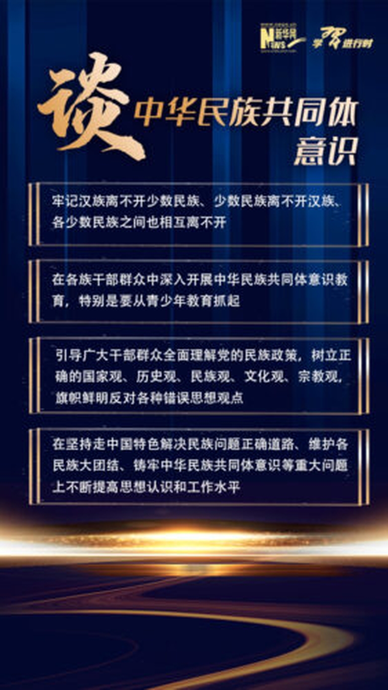 他要求广大党员、干部在坚持走中国特色解决民族问题正确道路、维护各民族大团结、铸牢中华民族共同体意识等重大问题上不断提高思想认识和工作水平。