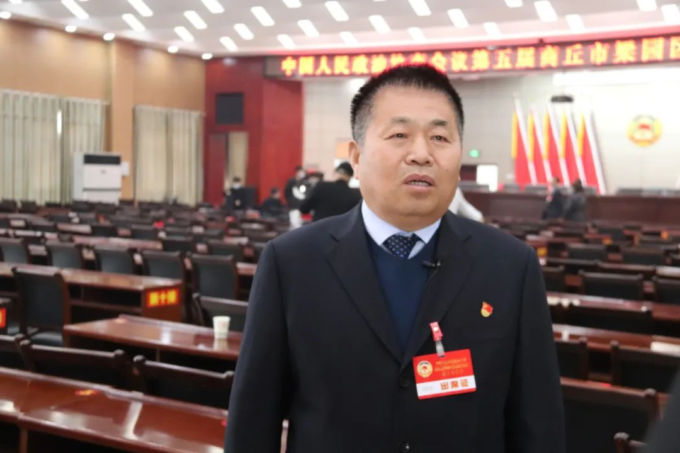 梁园区政协常委、一顺药业董事长韩世洪同志参加政协梁园区五届五次会议并接受记者采访。(田保庆)