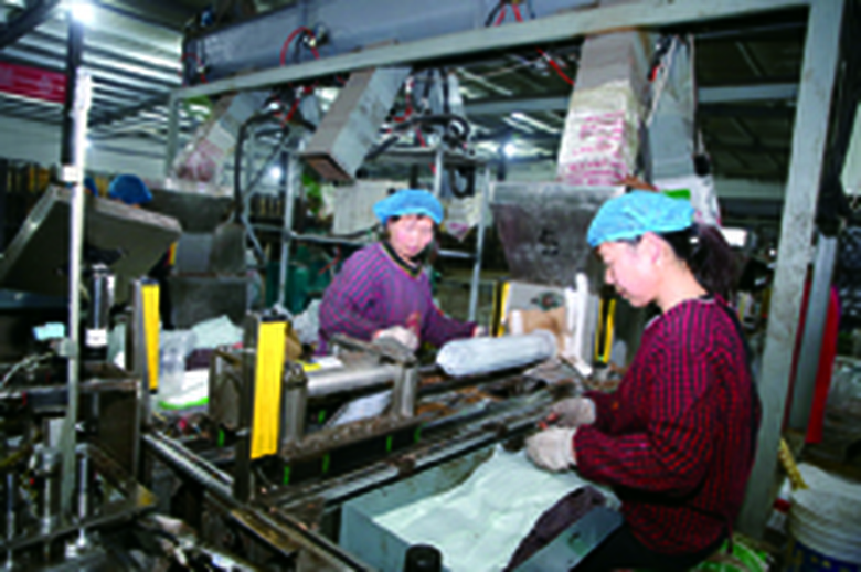 华宝农业开发有限公司的员工们正在制作食用菌菌棒。