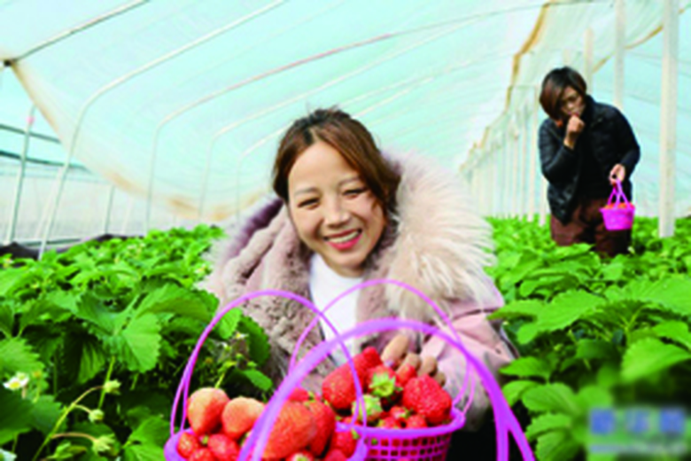 近日,汝阳县三屯镇南保村,游客在草莓采摘园采摘草莓。近年来,南保村曾经外出打工的农民吉展召积极返乡创业,在村里大力推广种植草莓,不仅吸引游客节假日前来观光采摘,还带动其他村民增收致富,助力乡村振兴。 康红军 摄