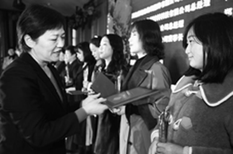 河南省妇联领导为服装行业优秀的“巧媳妇”颁奖。