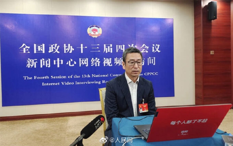 图为全国政协委员通过联想昭阳接受采访(图片源自人民网)