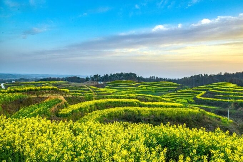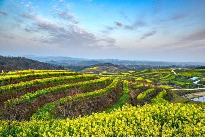 千亩油菜花盛开,放眼望去,梯田宛如金黄色“地毯”。焦汉平摄