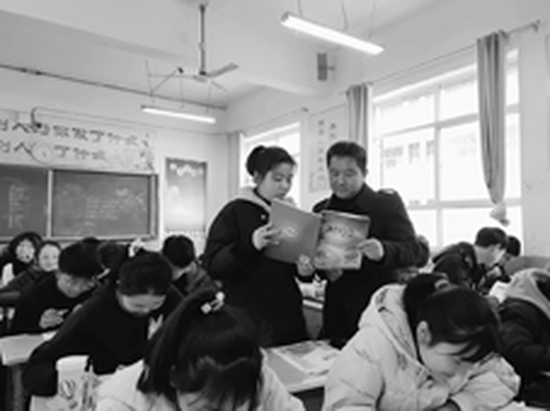 张志立利用中午自习在教室巡课,了解学生学习情况。