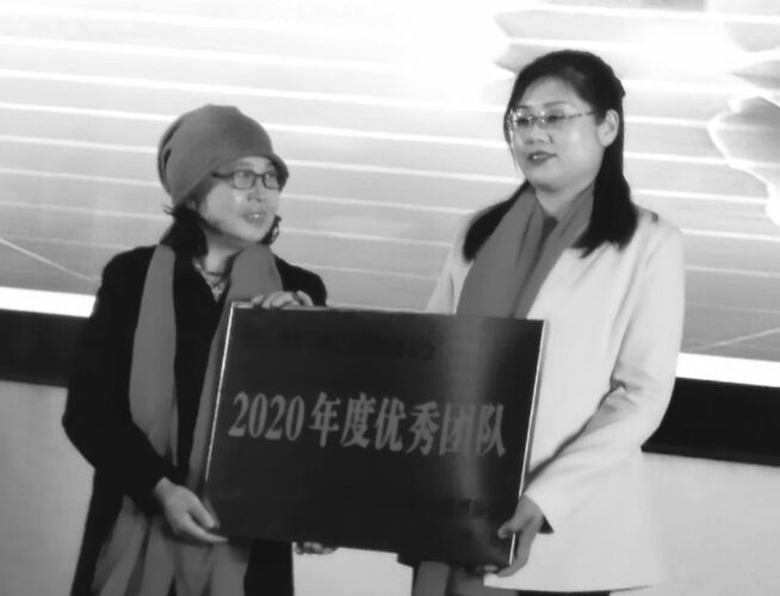 河南省陶玻协会为李雪亚(右)优秀团队颁奖