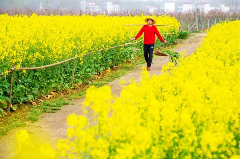 春分临近,河南省商城县20余万亩油菜花相继绽放,金灿灿的油菜花起伏着金色的波浪,阵阵飘香,沁人心脾。农民在田间地头劳作管护,呈现出一幅幅春耕美图。