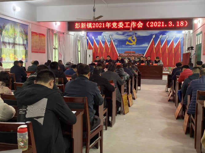 为全面贯彻落实党的十九大精神和中央、省、市、县党委工作会议精神,3月18日,彭新镇召开2021年党委工作会议,镇党委副书记、镇长孙耀湘同志主持会议。全体班子成员、机关干部、各部门负责人、各村(街)支书参加会议。