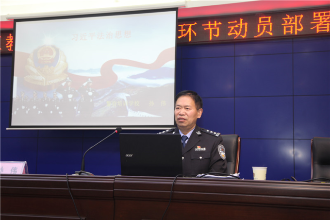 此次党课培训班会特邀请市局警官培训学校副校长孙伟同志授课,重点讲授《习近平法治思想》。