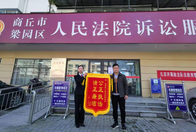 在党史学习教育和政法队伍整顿之时,商丘市梁园区人民法院想为群众所想,急为群众所急,通过诉前调解成功化解群众纠纷, 3月23日,当事人特意给法院送来锦旗。
