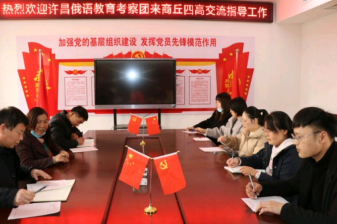 近日,许昌金鼎教育集团董事长王玥、金鼎高中校长闫明甫一行三人来到商丘市第四高级中学就俄语教学进行交流学习。走进俄语课堂听课,并与师生座谈。