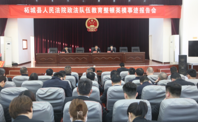为发挥先进典型的榜样引领作用,使法院干警学有榜样、赶有目标,激励和引领全院干警忠诚履职,深入推进教育整顿走深走实,按照教育整顿学习教育环节部署要求,3月25日,柘城县法院举行英模事迹报告会,报告会由政治部主任张自云主持, 党组书记、院长张书勤出席报告会。