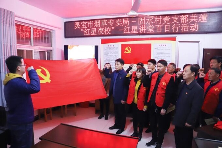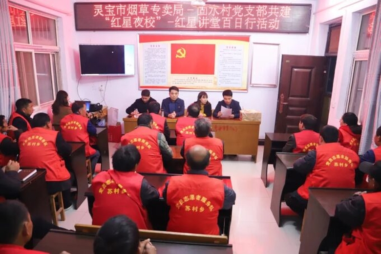 “红星夜校”是市烟草专卖局为庆祝中国共产党成立100周年,精心谋划的“三个百”活动内容之一。包括为村党支部赠送党旗;与村党员一起重温入党誓言;为烟农赠送《中国共产党简史》、《习近平讲党史》、《怎样把烟叶种好》、《好烟叶是这样种出来的》等书籍;与烟农共同观看《百家论坛》推出的“党史故事100讲”和农村农业部推出的“乡村振兴人物榜”节目,学习“生产运动渡过难关”、“包干到户 体制创新”、“土地改革 保家保田”以及许良英、张飞等乡村创业故事;围绕烟区发展新理念为烟农讲一堂技术课。