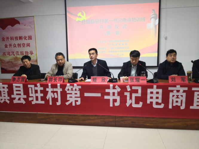 为提升全县驻村第一书记电商素能,助推乡村振兴,3月30日上午8:30,社旗县委组织部、社旗县商务局在社旗县电子商务产业园举办了全县驻村第一书记电商专题培训班开班仪式。县委常委、组织部部长姬欣,县政府副县长张耀一出席开班仪式。县委组织部驻村办主任郭长印,县商务局党组书记刘军,县商务局党组成员、主任科员李志国和49位市派、县派驻村第一书记参加了第一期培训班开班仪式。开班仪式由县政府副县长张耀一主持。