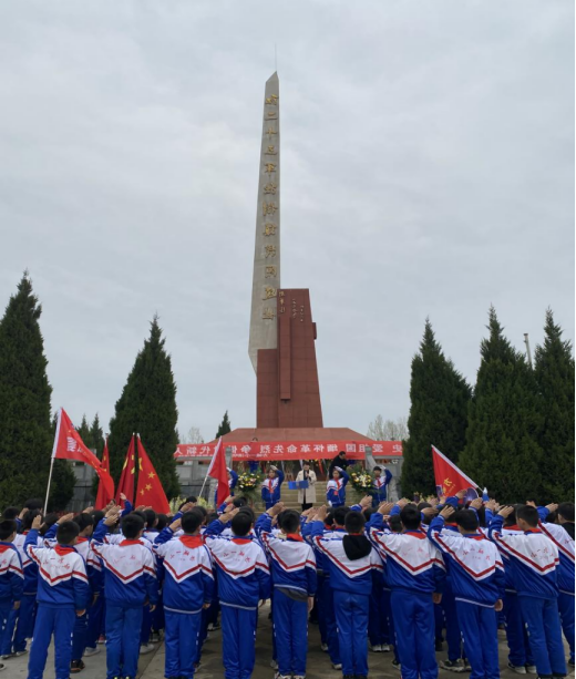 最后队员们近前瞻仰纪念碑、祭扫陵园,参观烈士纪念馆,了解革命先辈的光辉事迹,为烈士敬献小白花。