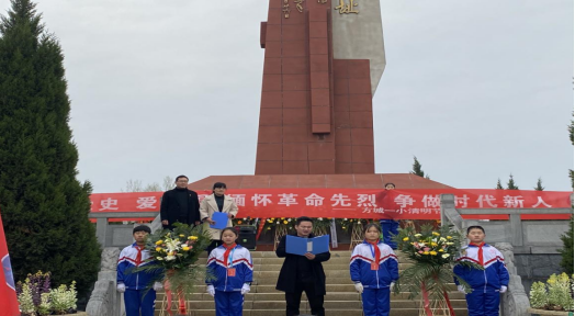 接着向烈士敬献花篮,行三鞠躬礼之后,少先队辅导员郭老师带领队员们重温入队誓词,不忘初心,牢记使命,决心好好学习,好好锻炼,时刻准备着:为共产主义事业贡献力量!