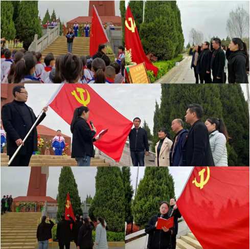 全体党员不忘初心,牢记使命,在党旗下庄严宣誓,重温入党誓词,表达对中国共产党的无比忠诚和对革命烈士牺牲精神的无限敬佩。