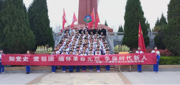 清明节是中华民族缅怀革命先烈,寄托哀思的传统节日。2021年3月26日上午,方城县第一小学120余名党员老师和学生代表在贾校长等领导的带领下,列着整齐的队伍,来到红二十五军长征鏖战独树镇纪念地——方城县烈士陵园,开展了“知党史 爱祖国 缅怀革命先烈 争做时代新人”清明祭扫活动。祭奠数位长眠这里的革命英雄们。