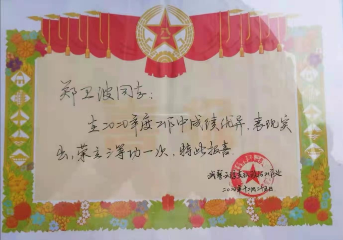正阳县真阳籍现役军人郑卫波同志,现在武警广东省云浮支队服役。他作风优良、军事过硬,曾多次在支队举办的军事技能比舞中荣获奖项。2020年度,他不仅因工作业绩突出而荣获三等功一次,还被支队评为“优秀士兵”,受到了部队领导及同志们的高度好评。