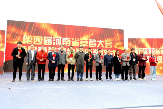 仪式上,有关领导与专家为第四届河南省草莓大会精品草莓擂台赛金、银将获得者颁奖
