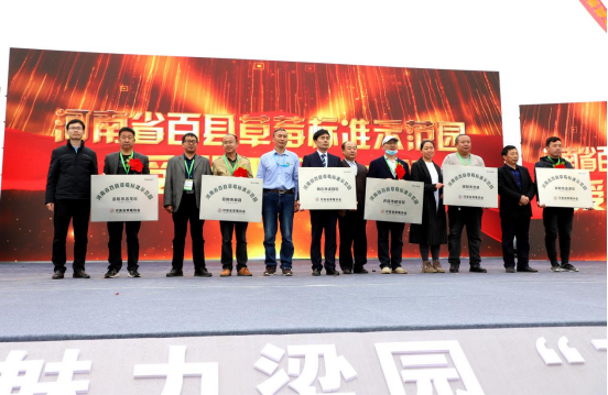 近年来,在河南省草莓协会的技术指导下,积极通过科学规划、政策扶植、引进先进科技优化等措施,发展规模种植、提升草莓品质、注重园区引领,为草莓产业发展打下坚实基础。在这次草莓大会上,商丘市梁园区草莓示范基地、许昌魏景今日庄园、信阳新县罗成寨现代农业园、洛阳龙恺农业有限公司、范县吉祥种养殖农民专业合作社、孟津县崔窑农家乐采摘园6个单位被河南省草莓协会授予“河南省百县草莓标准示范园”。