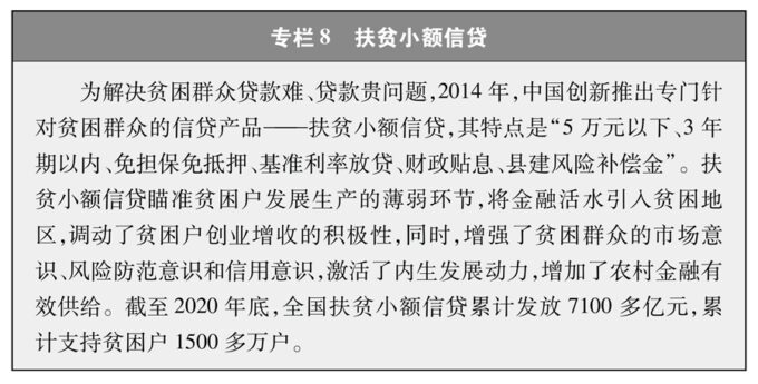发展生产脱贫一批。发展产业是脱贫致富最直接、最有效的办法,也是增强贫困地区造血功能、帮助贫困群众就地就业的长远之计。支持和引导贫困地区因地制宜发展特色产业,鼓励支持电商扶贫、光伏扶贫、旅游扶贫等新业态新产业发展(专栏7),依托东西部扶贫协作推进食品加工、服装制造等劳动密集型产业梯度转移,一大批特色优势产业初具规模,增强了贫困地区经济发展动能。累计建成各类产业基地超过30万个,形成了特色鲜明、带贫面广的扶贫主导产业,打造特色农产品品牌1.2万个。发展市级以上龙头企业1.44万家、农民合作社71.9万家,72.6%的贫困户与新型农业经营主体建立了紧密型的利益联结关系。产业帮扶政策覆盖98.9%的贫困户,有劳动能力和意愿的贫困群众基本都参与到产业扶贫之中。扎实推进科技扶贫,建立科技帮扶结对7.7万个,选派科技特派员28.98万名,投入资金200多亿元,实施各级各类科技项目3.76万个,推广应用先进实用技术、新品种5万余项,支持贫困地区建成创新创业平台1290个。为贫困户提供扶贫小额信贷支持(专栏8),培育贫困村创业致富带头人,建立完善带贫机制,鼓励和带领贫困群众发展产业增收致富。