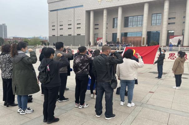 郑州烈士陵园内,松柏环绕,丰碑矗立。全体人员来到英雄纪念碑前,默哀致敬,敬献鲜花,瞻仰烈士墓,表达对革命烈士们深深的敬意和怀念。随后大家在中原英烈馆前面对党旗,高举右手,重温入党誓词,现场庄严而肃穆。