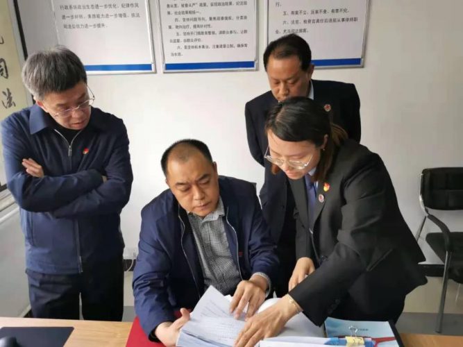 4月7日,省政法队伍教育整顿第十二驻点指导组综合组马利军、王文龙一行到湖滨区司法局检查指导教育整顿工作。指导组一行首先查看了三门峡市湖滨区司法局教育整顿宣传栏、展板、电子屏,薛院强局长详细汇报了区司法局教育整顿各项工作开展情况。随后指导组查阅了工作台账、学习笔记、心得体会,以及对照学习教育环节评估验收方案逐项进行检查,就学习教育阶段中存在的不足与短板提出了富有针对性、创新性、指导性的具体意见。