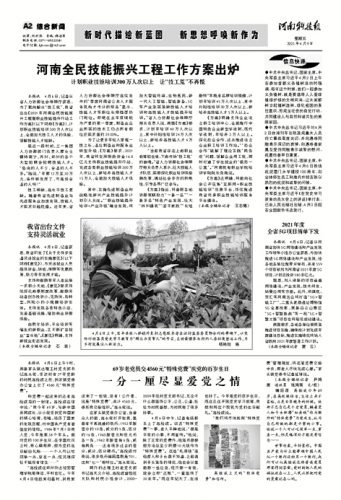 0409 河南全民技能振兴工程工作方案出炉 计划职业技能培训300万人次以上 让“技工荒”不再慌