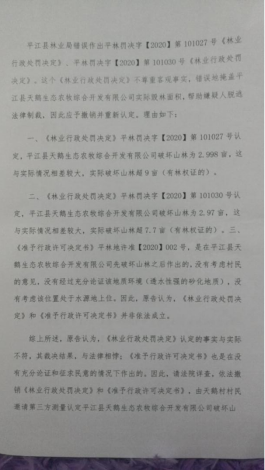 对此,八农民认为这样的《林业处罚决定》“不尊重客观事实,错误掩盖平江县天鹅生态农牧综合开发有限公司(以下简称天鹅公司)实际毁林面积,帮助嫌疑人脱逃法律制裁”。