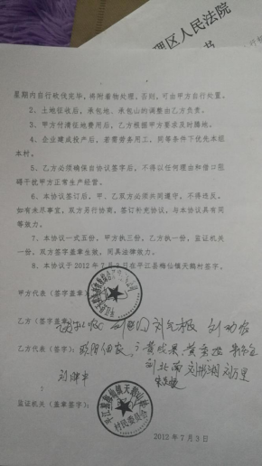 起诉人认为,这份由天鹅公司出具、天鹅村委会盖上印章的《征收土地补偿协议书》上的乙方代表签字人的笔迹与协议书上签字人提供的笔迹差异太大,存在人为模仿他人笔迹签字的痕迹。