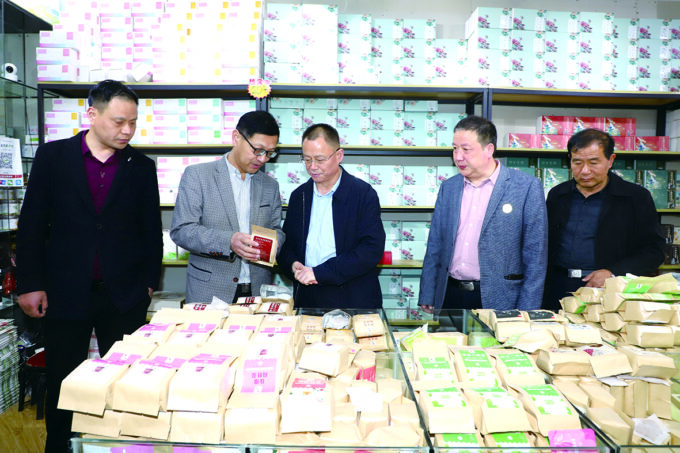 本报社社长李志民(左三)率团在亳州中药材专业市场考察惠民电商合作(花茶)项目。