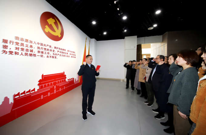 河南科技报社社长李志民领誓,报社党员重温入党誓词