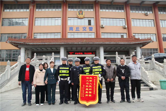 4月13日上午11时许,家住商丘市开发区平安办事处房楼村委会白庄村村民张某良的家属,满怀感激之情将一面绣有“感谢人民好警察,助人为乐显真情”的锦旗,专程送到商丘市公安局交警支队直属二大队开发区中队,感谢交警把突发疾病的老父亲及时护送到医院救治。