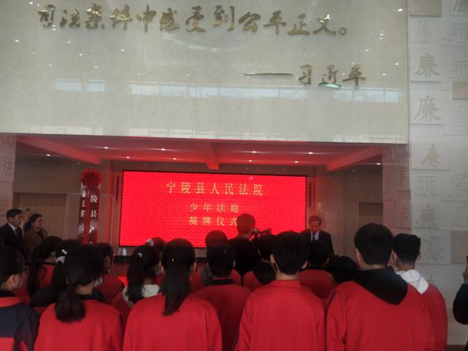 4月14日上午,宁陵县人民法院举行少年法庭揭牌仪式,党组书记、院长王宏伟主持揭牌仪式,县妇联、县共青团、县教育局等单位代表及县初级中学60余名师生应邀参加揭牌仪式。