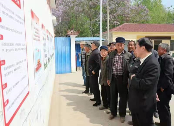 在程楼乡胡庄村,陈殿福院长与该村驻村书记、“两委”班子和群众代表举行了宣誓仪式,集中学习了习近平总书记在党史学习教育动员大会上重要讲话精神、总体国家安全观相关文件材料,听取驻村书记关于村内绿化建设、基础建设和宣传牌制作情况报告,并举行座谈征求群众代表意见建议。