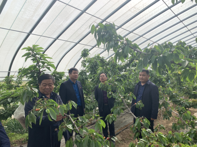 考察团一行到达尉氏县水坡镇瓦岗寨村,水坡镇党委书记带领大家前往瓦岗寨村小杂果示范园区,介绍园区经营现状以及未来的发展方向,并让合作社负责人现场与考察团成员就樱桃种植在品种选育、抗病抗旱、生长特性、技术管理等方面与大家进行了分享交流,领导班子成员认真聆听授课讲解。通过考察学习,大家对樱桃产业有了更深的认识,转变了思想观念,从而拓宽了视野,进一步坚定了发展信心。