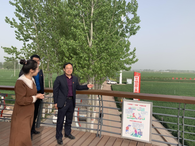 随后,米晓晖一行到尉氏县张市镇观摩高标准良田建设工作,现场观看了张市镇高标准农田建设工作汇报专题片;实地查看了高标准农田项目区内土壤监测点和检测服务站,详细听取了农业技术人员的介绍。经过实地参观学习,考察团成员认为尉氏县高标准农田建设项目设计合理,建设标准高,施工规范,在推进产业融合发展、延长农业产业链、增加产业附加值、助力乡村振兴等方面起到了重要的示范带动作用,葛岗镇将加快推进张庄村高标准农田项目建设,让智慧农业在葛岗镇落地生根。